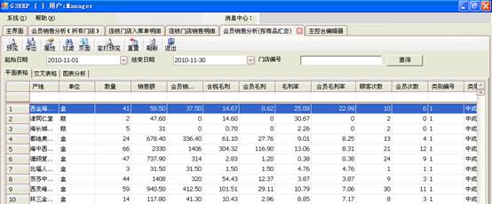 ※“毛利率”与“会员毛利率”的比较分析:一般情况下“会员毛利率”剔出“会员折扣差率”后,要与“平均毛利率”基本是一样的。如果“会员毛利率”小于“平均毛利率”,那就危险了,那说明会员是到店里来是 “淘便宜货”的。例如上图“会员毛利率=14.12” 、“平均毛利率=19.16”,企业又没有启用会员折扣,二者差异5%以上,就明显说明会员对企业的价格体系是不认可的,说明会员到店里来只是选择那些他们熟悉的敏感商品而已。